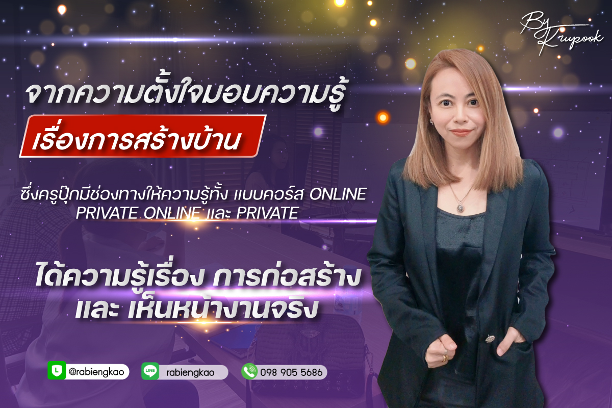 คอร์สที่จะเปลี่ยนแปลงคุณไปตลอดกาล ในการสร้างรายได้จากความรู้ที่คุณมี..ในแบบที่ไม่เคยมีใครบอกคุณ สำหรับผู้ที่มีความรู้เรื่องงานก่อสร้าง ไม่ว่าจะเป็นการคุมงาน , การทำราคา , การออกแบบหรือ การวางแผนงานการก่อสร้าง รวมไปถึงสถาปนิก ตกแต่งภายใน ที่ต้องการแสดงความรู้ ความสามารถบนโลก Online และ ต้องการสร้างรายได้ แบบที่ครูปุ๊กทำ ไม่ว่าคุณจะเคยสอน เคยบรรยาย หรือ เป็นพนักงานประจำที่ไม่ได้ ติดต่อกับใครในชีวิตประจำวัน คอร์สนี้จะทำให้คุณเปลี่ยนไป … เพราะครูปุ๊กก็คือวิศวกร ที่แต่ก่อนก็ไม่ถนัดในการบรรยายเหมือนวิศวกรทั่วไป จะเอาเคล็ดลับ มาบอกกับคุณ